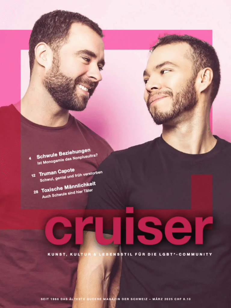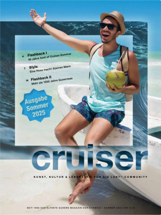 CRUISER ist das kostenlose Monatsmagazin für Kunst, Kultur & Lebensstil der queeren Community im Grossraum Zürich.